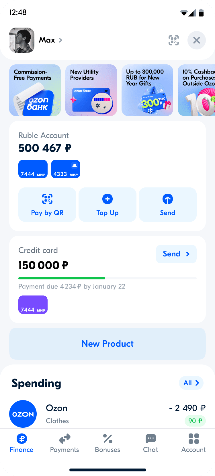 It is part of the biggest Russian IT-company, is a major financial player offering B2C services like deposits, credit cards, and BNPL, alongside B2B solutions such as leasing and factoring. Initially supporting Ozon’s marketplace, it now operates as an independent business driving financial innovation.