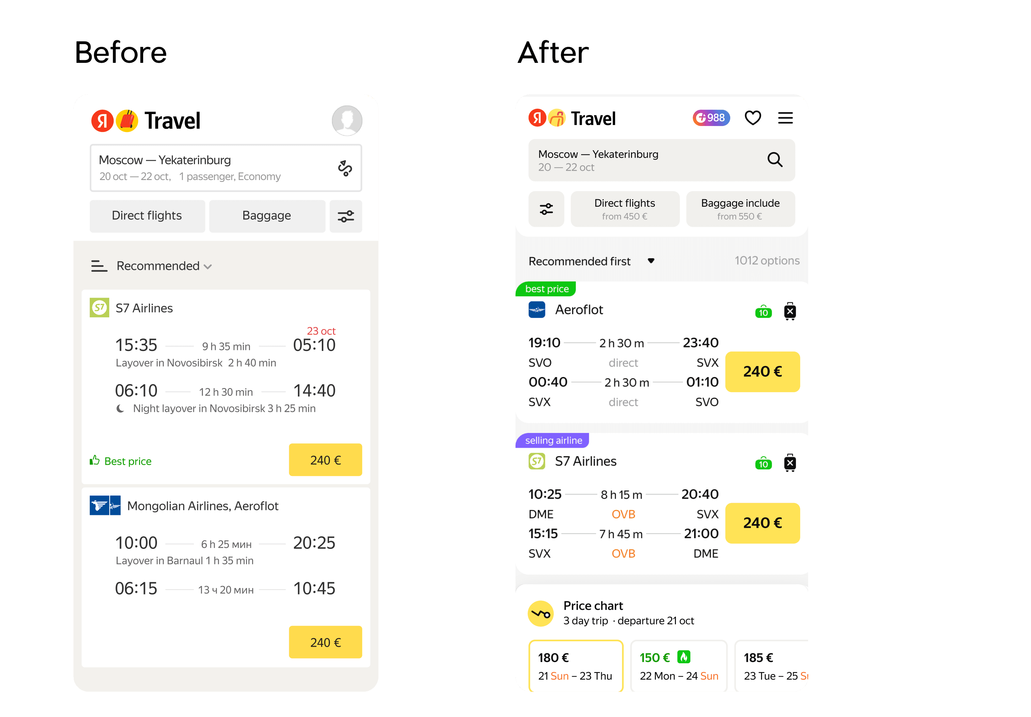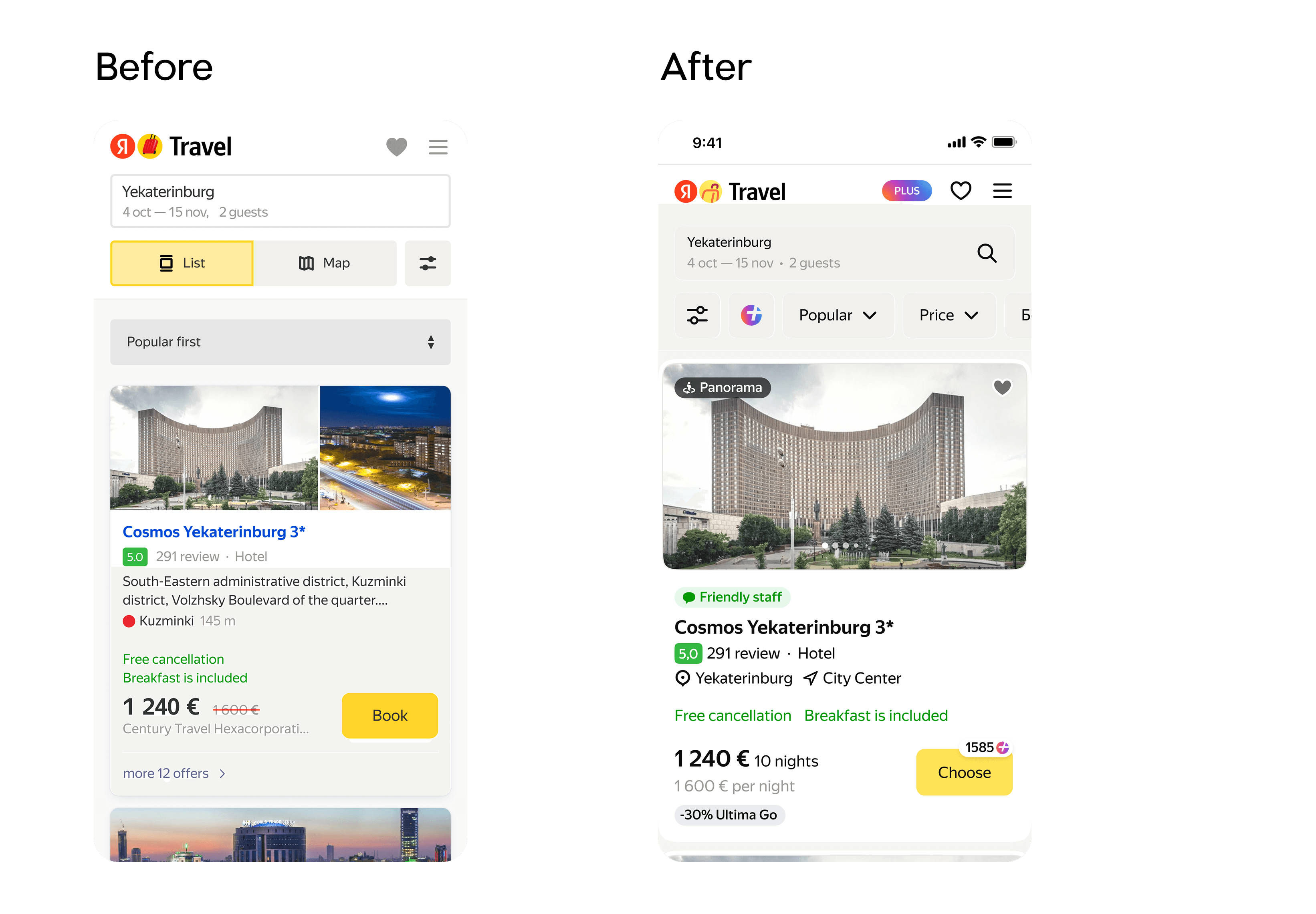 * It is important to note that the latest version was initiated and developed while I was at Yandex Travel, but it was released after my departure and has continued to evolve under the current design director, Ilya Skopin, and the design team.